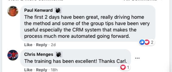 Around 50% of the students who go through this program get ABSOLUTELY HOOKED and end up working with myself (Carl) and my team weekly and become my Dealmaker Protege.