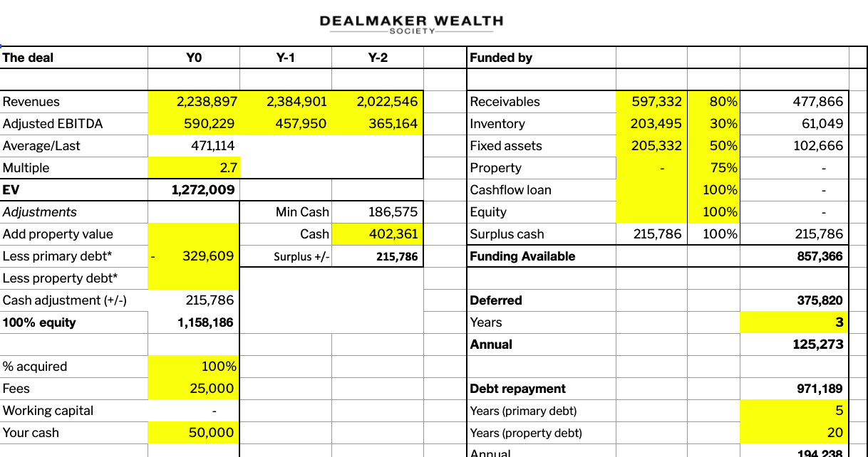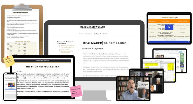 © Dealmaker Wealth Society, LLC (“Dealmaker Wealth Society,” “DWS” or “DWS”) produces, markets, sells, and distributes an online course on how to buy small businesses using M&A strategies like a Leveraged Buyout among other strategies. DWS is strictly a training business focused on business building, and entrepreneurship.