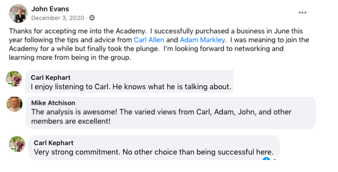 Step 3 - You will gain access to our Business Buying Launch Facebook Group where you will be able to make incredibly valuable connections to other likeminded aspiring entrepreneurs and business owners.  Community and camaraderie.