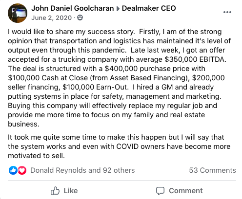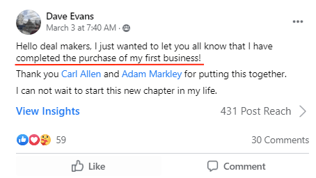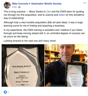 © Dealmaker Wealth Society, LLC (“Dealmaker Wealth Society,” “DWS” or “DWS”) produces, markets, sells, and distributes an online course on how to buy small businesses using M&A strategies like a Leveraged Buyout among other strategies. DWS is strictly a training business focused on business building, and entrepreneurship.